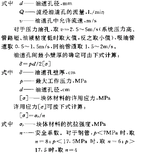 塊體內(nèi)油道孔徑的確定可按下式計算: